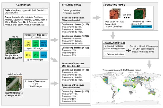 To build the CNN-based method for tree cover estimation, we followed four phases (Figure 1):