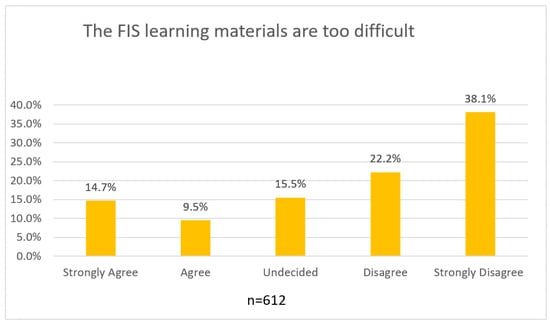 Pupils agreement with the statement: “The FIS learning materials are too difficult”.