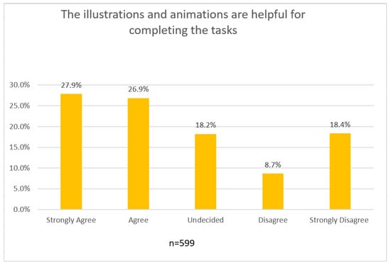 Pupils agreement with the statement: “The illustrations and animations are helpful for completing the tasks”.