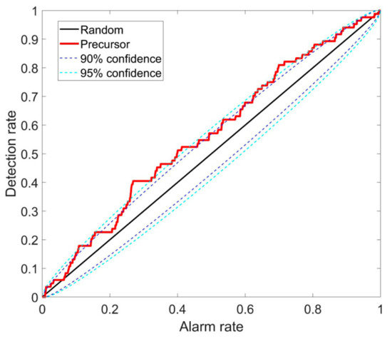 - Han, P.; Hattori, K.; Zhuang, J.; Chen, C.H.; Liu, J.Y.; Yoshida, S. Evaluation of ULF seismo-magnetic phenomena in Kakioka, Japan by using Molchan’s error diagram. Geophys. J. Int. 2017, 404, 482–490. [Google Scholar] [CrossRef]