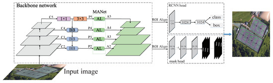 (1) For more robust handling of arbitrary-oriented objects, we use the instance segmentation branch of Mask R-CNN to generate shape masks of the objects, and then use them to determine the accurate object’s rotation bounding box. Compared with the existing rotation detector, this is a simple and efficient method for obtaining a rotating bounding box, because it is not necessary to design a rotation anchor or a rotation branch in advance.