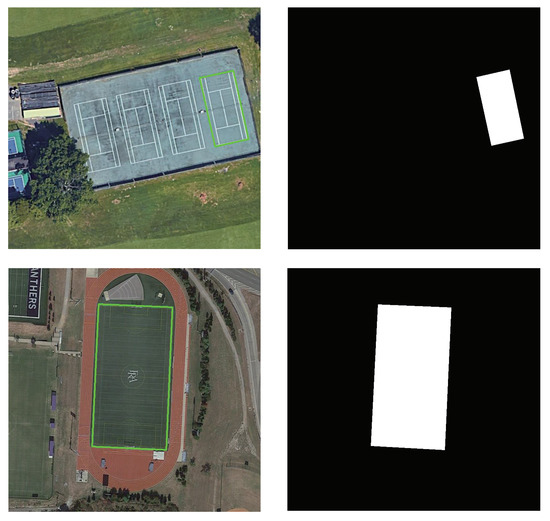 The instance label of remote sensing image is shown in Figure 3. Unlike natural image datasets such as COCO and Pascal VOC, which provide pixel level labels, remote sensing image object detection datasets only provide coordinate labels of object. Therefore, generating instance label is a precondition for using Mask R-CNN. In this paper, we get the polygon connected by the object’s coordinates, and regarded the pixels in the polygon as the object, and the pixels outside the polygon as the non-object, then we get an instance label of the object. Although this approach will bring some noise, the implementation process is quite simple. This kind of instance labels has little effect on the final instance segmentation results as demonstrated by experiments.