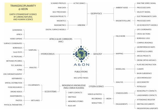 Cataloguing our natural and cultural heritage and making this information available is an important step in determining what we need to sustain Earth as a habitable planet. The Africa Alive Corridors (AAC) program of AEON, a spin off from a larger global program named ‘Gondwana Alive’ [72,73], is designed to be a two-way conduit for knowledge transfer between academic institutions and African communities (Figure 16).