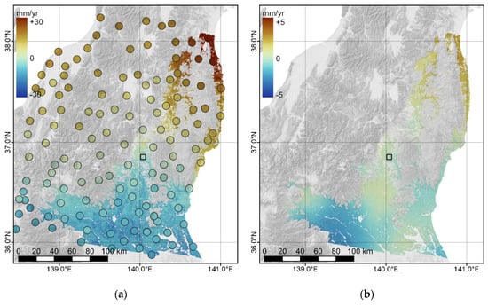 - Geospatial Information Authority of Japan. Crustal Movements in the Tohoku District. Rep. Coord. Comm. Earthq. Predict. 2018, 100, 56–68. [Google Scholar]