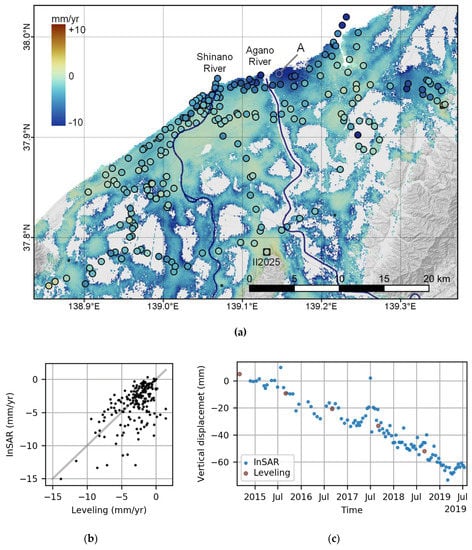 - Niigata Prefecture Ground Subsidence In the Niigata Plain. Available online: http://npdas.pref.niigata.lg.jp/kankyotaisaku/5c85f40531a5c.pdf (accessed on 27 November 2019).