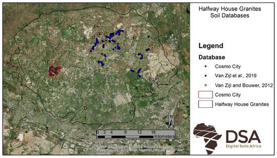 - Van Zijl, G.M.; Bouwer, D. Soil Observation Dataset from the Halfway House Granites; University of the Free State dataset; University of the Free State: Bloemfontein, South Africa, 2012. [Google Scholar]