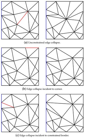While some constraints are used in the original methods to maintain the shape of the borders of a mesh [14], directly applying edge collapse to is likely to remove its corner vertices (and the shape of the borders afterwards).