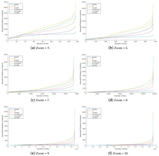 Sorted symmetric Hausdorff distances for all the tiles in zooms 5 to 10.