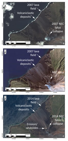 - Ernst, G.G.J.; Kervyn, M.; Teeuw, R.M. Advances in the remote sensing of volcanic activity and hazards, with special consideration to applications in developing countries. Int. J. Remote Sens. 2008, 29, 6687–6723. [Google Scholar] [CrossRef]