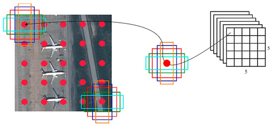 Figure 3 illustrates how the generated default bounding boxes on a 5 × 5-feature map are represented on the input image and overlap with the possible objects (