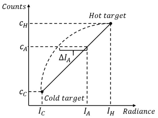 The two-point calibration is a widely used method for microwave radiometer calibration [,]. The schematic of two-point calibration is illustrated in Figure 1.