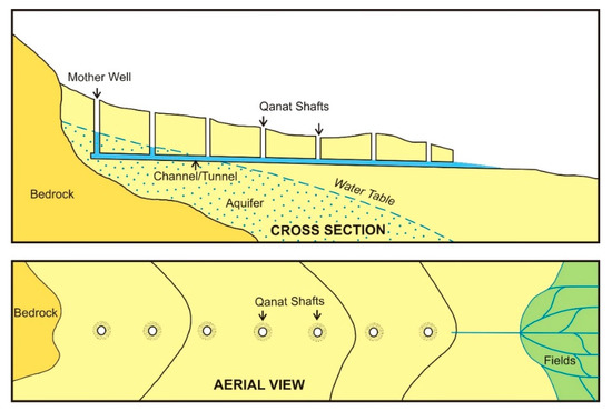 - English, P.W. The Origin and Spread of Qanats in the Old World. Proc. Am. Philos. Soc. 1968, 112, 170–181. [Google Scholar]