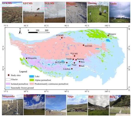 - Zhao, L.; Sheng, Y.; Wu, T.H.; Li, R.; Xie, C.W.; Wu, J.C.; Li, J.; Yao, J.M.; Wu, X.D.; Hu, G.J.; et al. Permafrost and Its changes on Qinghai-Tibet Plateau; Science press: Beijing, China, 2019. [Google Scholar]