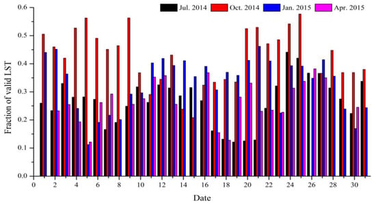 | MODLT1D | Daytime/Nighttime Land Surface Temperature | 01.07–31.07.2014, 01.10–31.10.2014, 01.01–31.01.2015, 01.04–30.04.2015 | Daily | 1000 m |