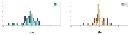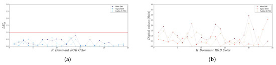 In colorimetric accuracy studies, it is usual to establish a threshold value known as “Just Noticeable Difference” (JND) or tolerance for . In this study, we set a JND value of four CIELAB units which ensures imperceptible variations to human vision [46].