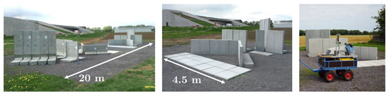 - for the reference planes we want to use standard face concrete elements as used for retaining walls in civil engineering (cf. Figure 5 and Section 6.1); such face concrete elements are highly planar, cost-effective, stable, and sufficiently robust for a permanent outdoor installation.