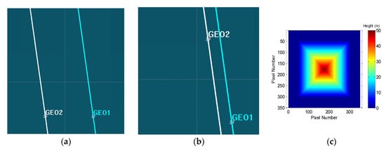 Therefore, to optimize the performances of GEO InSAR formation, we need to reduce the along-track baseline as much as possible, while the vertical baseline should be as close to the optimal baseline as possible. The master satellite of the formation is selected with an inclination of 16° [], which has an excellent coverage performance of low and medium latitude regions (such as China), so we only need to design the slave satellite’s orbital elements.