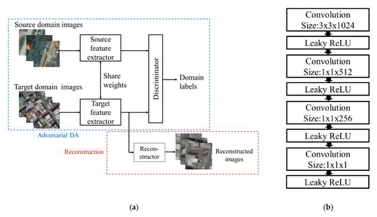 Overview of adversarial DA: (a) algorithm and (b) discriminator network. Leaky ReLU is a variant of the activation function called rectified linear unit (ReLU).