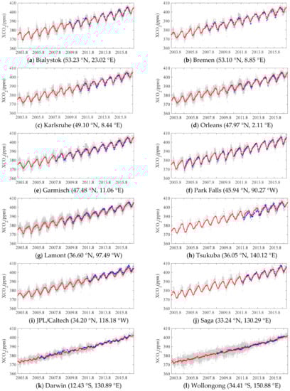 - Reuter, M.; Bovensmann, H.; Buchwitz, M.; Burrows, J.P.; Connor, B.J.; Deutscher, N.M.; Griffith, D.W.T.; Heymann, J.; Keppel-Aleks, G.; Messerschmidt, J.; et al. Retrieval of atmospheric CO2 with enhanced accuracy and precision from SCIAMACHY: Validation with FTS measurements and comparison with model results. J. Geophys. Res. 2011, 116. [Google Scholar] [CrossRef]