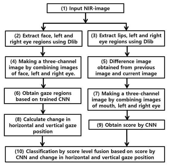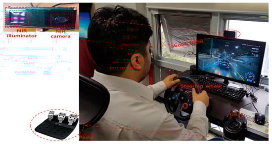 Several studies have been conducted relating to driver’s driving behaviors [6,7,8,9]. Existing research for driver’s behavior classification can be broadly classified into non-visual behavior based methods and visual behavior based methods. The former can be further classified into three categories i.e., the Bio-signal-based method [10,11,12,13], Voice-based method [14,15,16,17], and Gyro-sensor and accelerometer-based methods [3,4,18,19,20,21,22,23]. Bio-signal-based methods are based on detecting physiological signals while using electroencephalography (EEG) or electrocardiogram (ECG) sensors. They are used to correlate the emotions or sleepiness to abnormal driving behaviors. Lin et al. classified driving styles into aggressive and gentle styles that are based on event related potential (ERP) difference. Hence, driving style classification is undertake by analyzing the EEG response [10]. Zheng et al. combine EEG and eye tracking to develop a multimodal emotion recognition system. The combined pupillary response was collected from the eye tracker with EEG signals to improve the performance of emotion recognition [11]. Different other driving behaviors were classified while using bio-signal based methods. Koelstra et al. presented a database for the analysis of spontaneous emotions using bio-signals. It can be used for testing of affective state estimation methods [12]. Khushaba et al. used fuzzy system for combining information obtained from different bio-signals to detect the driver’s drowsiness level. They used the efficient fuzzy mutual-information-based wavelet packet transform (FMIWPT) feature extracting method to classify driver drowsiness into one of predefined levels of drowsiness [13]. Despite of the advantages of bio-signal based methods, there is a possibility that the method of attaching the EEG or ECG sensor to the body may cause psychological discomfort to the driver, so that it might be difficult to accurately measure only the bio-electrical signals that are related to the intact abdominal operation. There is also possibility of detachment of sensors from driver’s body and they are relatively expensive.