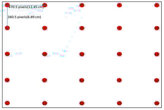 Gaze position is calculated based on the 25 gaze regions defined on the 24-inches monitor screen with resolution of 1920 × 1080 pixels, as shown in Figure 5. The size of circular target is 34 pixels for radius (9 mm for radius). The gaze regions are obtained by using the trained CNN-model (discussed in Section 3.4) for the desktop environment. Once the gaze regions are obtained, gaze position is calculated based on the obtained gaze regions. The current gaze position is horizontal and vertical position of gaze from the reference gaze region i.e., region 1, as shown in Figure 5. Hence, from the obtained gaze regions, change in gaze position is calculated by difference between the current and previous gaze position. That will be ultimately used to find change in horizontal and vertical gaze positions.