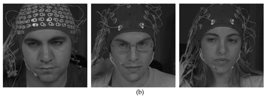 Examples of the facial images from Open database: (a) normal emotion; (b) aggressive emotion.