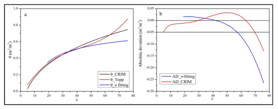 Comparisons between CRIM,υ-fitting equations and the Topp equation (a) and their absolute deviation (b).