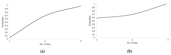 Distribution of probability model (Equation (2)) when applied to data in Table 6. The model realistically approximates the probability distribution (a) and the carrying capacity (b) when the model runs with the whole dataset.