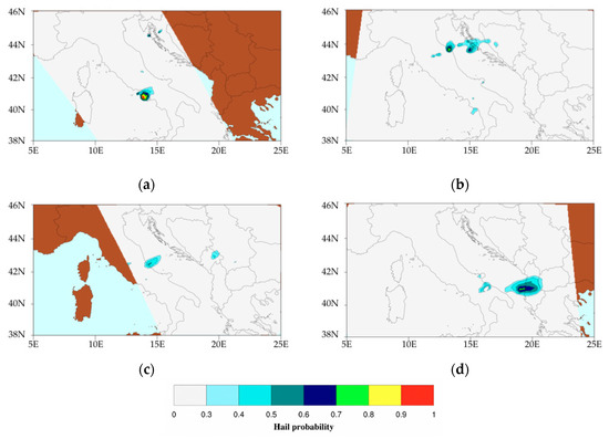 The performances of MWCC-Hail will be displayed by applying the model to several hailstorms characterized by different regime of severity. The aim of this section is showing the sensitivity of the detector to different hail conditions by prospecting its employing in reconstructing the hail patterns on the global scale. Accordingly, probability values lower than 0.36 are classified as no hail, values in the range 0.36–0.60 are associated to hail, and probabilities greater than 0.60 are associated to the super hail category.