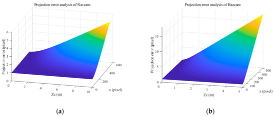 Projection error analyses results for both Navcam (a) and Hazcam (b).