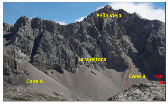 - Serrano, E.; Sanjosé, J.J.; Gómez-Gutiérrez, Á.; Gómez-Lende, M. Surface movement and cascade processes on debris cones in temperate high mountain (Picos de Europa, northern Spain). Sci. Total Environ. 2019, 649, 1323–1337. [Google Scholar] [CrossRef] [PubMed]