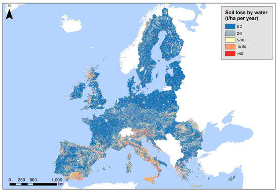 - Panagos, P.; Borrelli, P.; Poesen, J.; Ballabio, C.; Lugato, E.; Meusburger, K.; Montanarella, L.; Alewell, C. The new assessment of soil loss by water erosion in Europe. Environ. Sci. Policy 2015, 54, 438–447. [Google Scholar] [CrossRef]