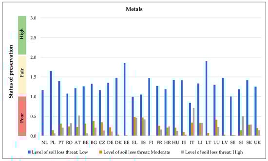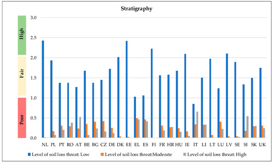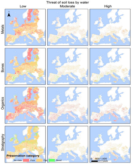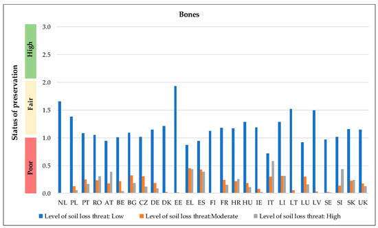- Remark 2: Northern countries (e.g., Scandinavian) are almost exclusively considered low threat areas in contrast to Mediterranean countries, which are characterised with moderate and high risk. As a Mediterranean example, in Italy, the mean soil loss by water per year equals that of areas characterised as low or high risk for bone materials. This indicates that subsurface material in this country is widely exposed and threaten by soil loss in comparison to other countries;