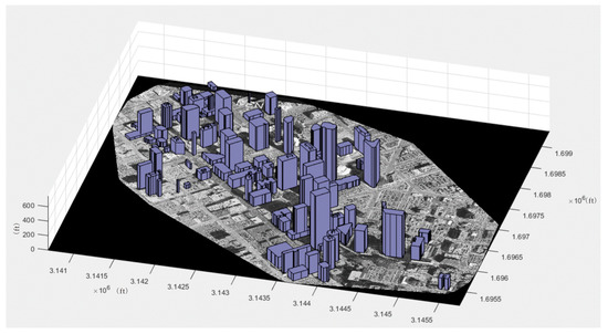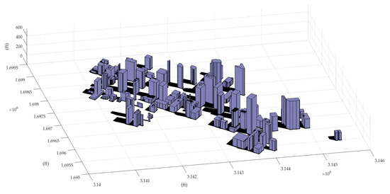 DBM data: the digital building model (DBM) describes the building structure, three-dimensional (3D) coordinates, topologic relationship, etc., and covers the entire city of Denver, downtown. The DBM was also provided by the City of Denver, Colorado. The DBM is visualized and is shown in Figure 2.