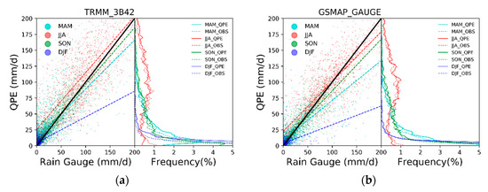In the present study, spring, summer, autumn and winter are defined as March–May, June–August, September–November, and December–February, respectively. In addition, the ranges of light rain, moderate rain, and heavy rain are 0–10 mm/day, 10–25 mm/day, and 25–50 mm/day, respectively.