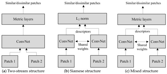 - Kumar, B.; Carneiro, G.; Reid, I. Learning local image descriptors with deep siamese and triplet convolutional networks by minimising global loss functions. In Proceedings of the IEEE Conference on Computer Vision and Pattern Recognition, Las Vegas, NV, USA, 27–30 June 2016; pp. 5385–5394. [Google Scholar]