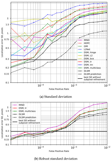 - Heinrich, M.P.; Jenkinson, M.; Bhushan, M.; Matin, T.; Gleeson, F.V.; Brady, S.M.; Schnabel, J.A. MIND: Modality independent neighbourhood descriptor for multi-modal deformable registration. Med. Image Anal. 2012, 16, 1423–1435. [Google Scholar] [CrossRef] [PubMed]