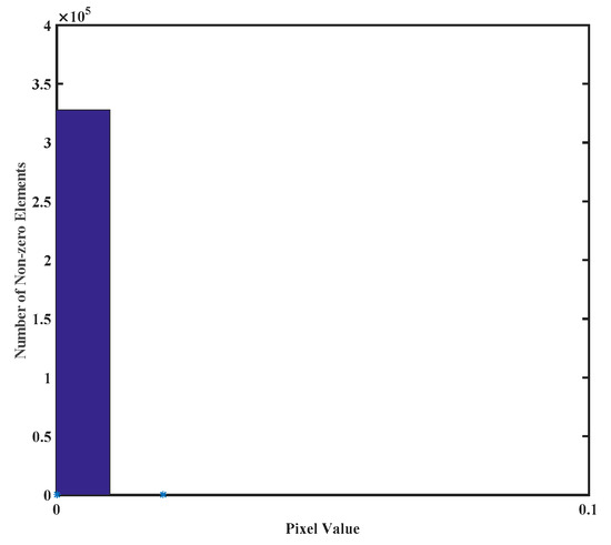Statistics of non-zero elements in . Vertical axis indicates the number of non-zero elements, while horizontal axis represents pixel value.