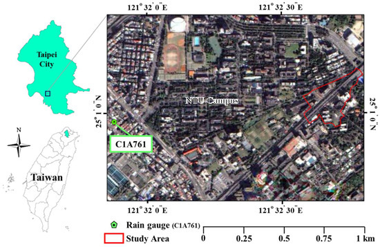 Study area (red polygon) at Gongguan, Taipei City, Taiwan.