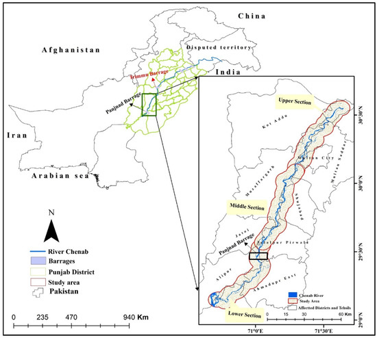 - Mahmood, S.; Rani, R. Extent of 2014 flood damages in Chenab Basin Upper Indus Plain. In Natural Hazards-Risk Assessment and Vulnerability Reduction; Intech Open: London, UK, 2018. [Google Scholar] [CrossRef]