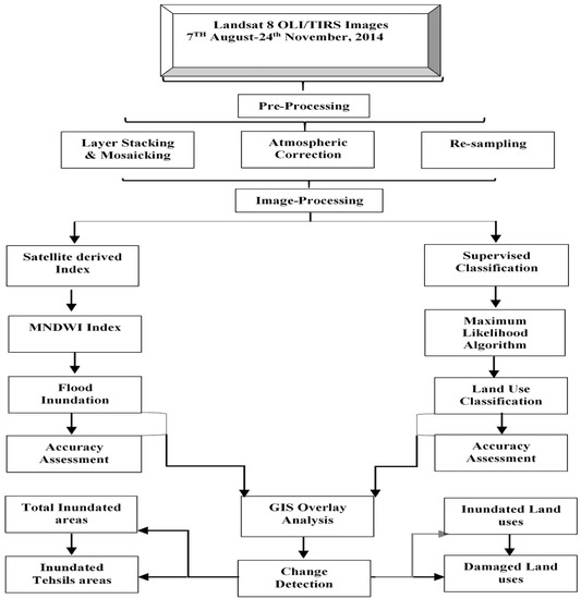 - Atif, I.; Mahboob, M.; Waheed, A. Spatio-Temporal Mapping and Multi-Sector Damage Assessment of 2014 Flood in Pakistan using Remote Sensing and GIS. Indian J. Sci. Technol. 2015, 8, 35. [Google Scholar] [CrossRef]