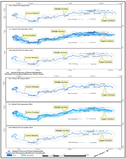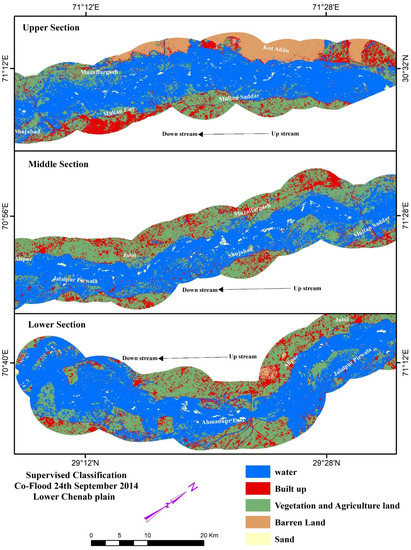 Sajjad, A.; Lu, J.; Chen, X.; Chisenga, C.; Saleem, N.; Hassan, H. Operational Monitoring and Damage Assessment of Riverine Flood-2014 in the Lower Chenab Plain, Punjab, Pakistan, Using Remote Sensing and GIS Techniques. Remote Sens. 2020, 12, 714. https://doi.org/10.3390/rs12040714