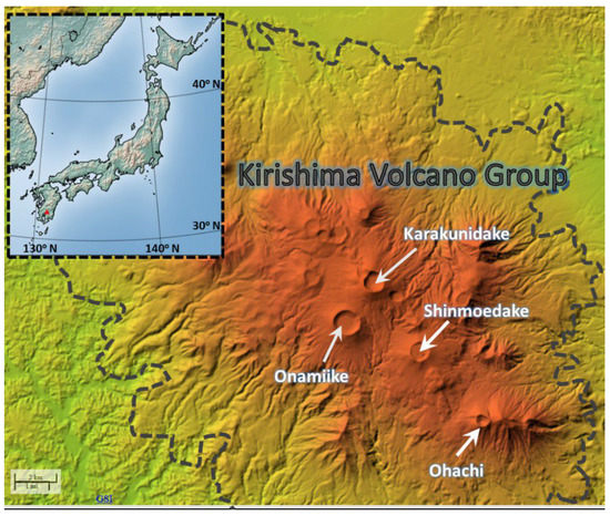 Mount Shinmoedake (elevation ∼1421 m), is a stratovolcano located in southwest Kyushu Island (31°3446.33N, 130°3929.67E) and is part of a cluster of volcanoes around Mt. Kirishima (red triangle in Figure 2).