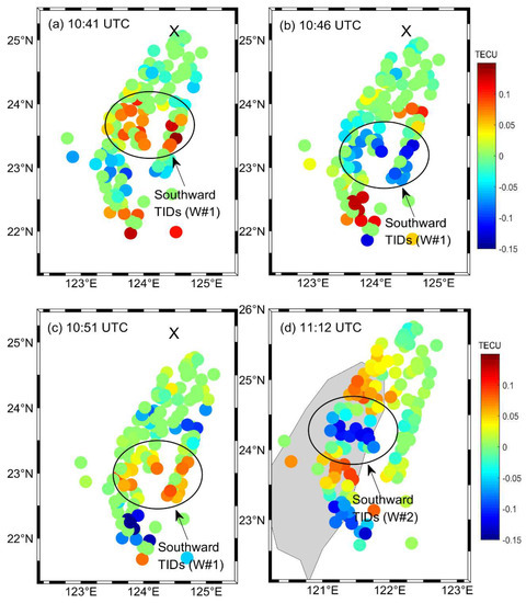 - Yang, H.; Monte Moreno, E.; Hernández-Pajares, M. ADDTID: An alternative tool for studying earthquake / tsunami signatures in the ionosphere. Case of the 2011 Tohoku earthquake. Remote Sens. 2019, 11, 1894. [Google Scholar] [CrossRef]