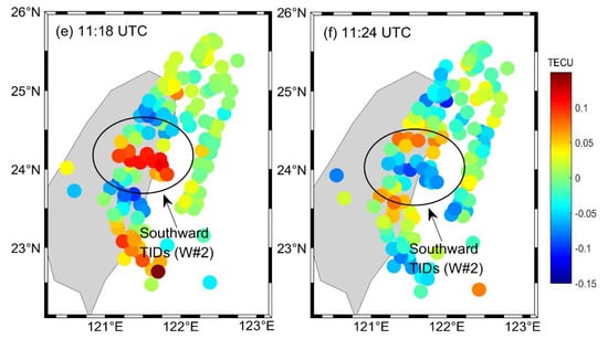 - Chou, M.Y.; Lin, C.H.; Yue, J.; Tsai, H.; Sun, Y.; Liu, J.; Chen, C. Concentric traveling ionosphere disturbances triggered by Super Typhoon Meranti (2016). Geophys. Res. Lett. 2017, 44, 1219–1226. [Google Scholar] [CrossRef]