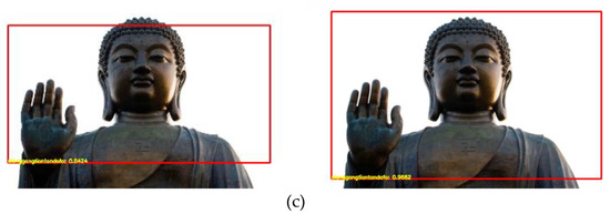 For the improved faster R-CNN algorithm, since the collected building images are all compressed, the algorithm will resize the building images when inputting the images. Then, the algorithm set the shortest side short_size = 600. If the height of the input image h is larger than the width w, the value of short_size/h = scale is the reference scale. After modification, the value of the height is h = h × scale and the value of width is w = w × scale. The advantage of this approach is that the input image is a little larger than the original image, and it has some improvement on the target of small scale due the upsampling of the images [27].
