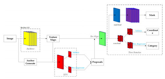 The structure of Mask Region Convolutional Neural Network (Mask-RCNN).