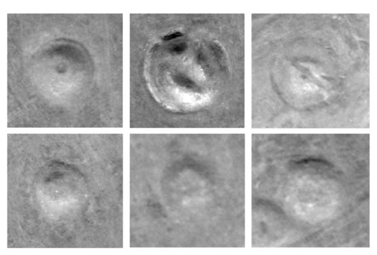 The top row shows “royal” burial mounds which are heavily impacted by looting and thus were attributed to the [impacted] category. The bottom row shows mounds which seem to be well-preserved and are thus attributed to the [well-preserved] category. The bottom right image shows two burial mounds of which only the middle one seems to be well-preserved. All images are scaled to the same size for comparability purposes.