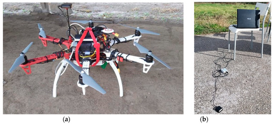 M-UAV radar imaging system: (a) hexacopter with onboard equipment; (b) ground-based GPS station.