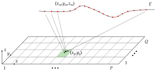 The trajectory Γ has an arbitrary shape in space and each measurement point is described by the position vector . The targets are supposed to be located into the planar investigation domain D, which is coincident with the air–soil interface assumed at . The time dependence is assumed and dropped.